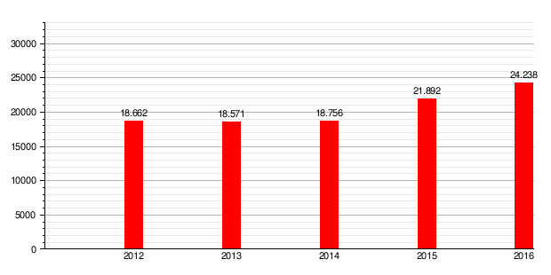 | 2016 | 5,798,135 | 240 | 24,159 | +8.8 % | 44,883 | Гуанчжоу Эвергранд | 16 | 2 |
