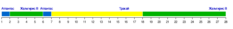 | Команда | АТЛ | ЖАЛ В | ЖАЛ К | ЛИЕ | СТУ | СУД | ТРА | УТЕ |