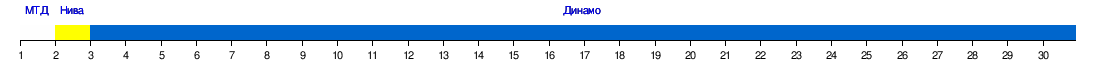 | 7 | ЦСКА | 0:4 | 0:1 | 1:2 | 3:3 | 1:1 | 2:1 | 1:0 | 3:0 | 2:1 | 0:0 | 1:0 | 0:0 | 2:1 | 1:2 | 2:0 | |