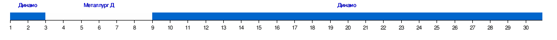 | Металлург Д | 1:2 | 0:2 | 0:2 | 1:1 | 2:1 | 0:0 | 1:0 | 2:1 | 3:1 | 1:0 | 3:0 | 1:1 | 3:0 | 2:0 | 2:0 | |