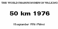 Чемпионат мира по спортивной ходьбе на 50 км был проведён IAAF через полтора месяца после окончания Олимпийских игр — 18 сентября 1976 года в Мальмё (Швеция). Участвовали спортсмены 20 стран (спортсмены 2 стран заявились, но не стартовали).
