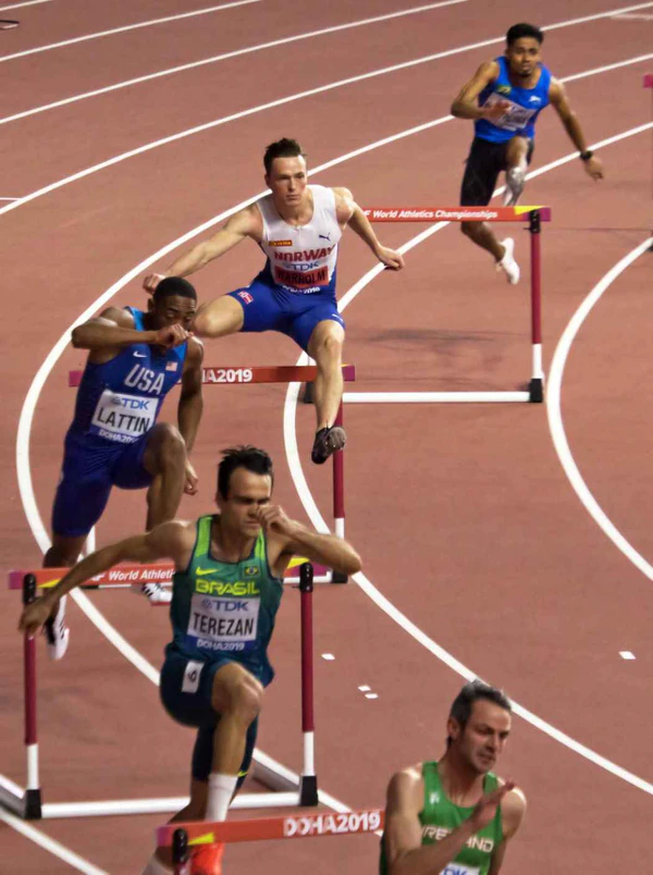 Финал в беге на 400 метров с барьерами у мужчин состоялся 30 сентября 2019 года[5]. Забег стал одним из самых ожидаемых на чемпионате мира 2019 года, поскольку в нём в очном противостоянии должны были встретиться 3 из 4 бегунов, преодолевавшие эту дистанцию быстрее 47 секунд. Карстен Вархольм и Рэй Бенджамин оформили данное достижение в 2019 году, а Абдеррахман Самба, выступавший перед родными трибунами, — годом ранее. При этом последний пропустил большую часть текущего сезона из-за травмы задней поверхности бедра (предыдущий старт в барьерном беге у него был 18 мая).