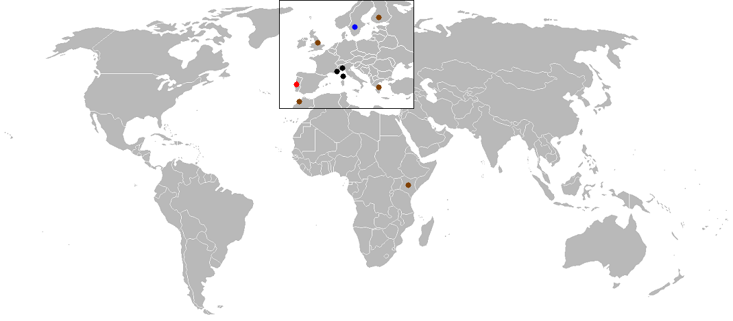 | Черный = Асфальт | Коричневый = Гравий | Синий = Снег\Лёд | Красный = Смешанное покрытие |
