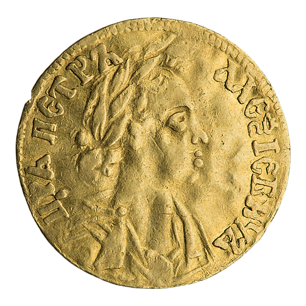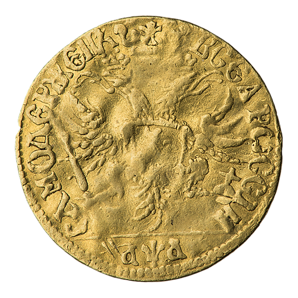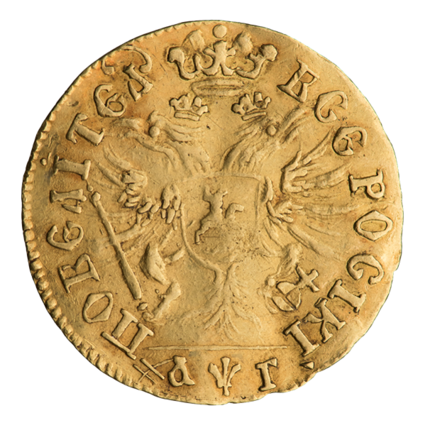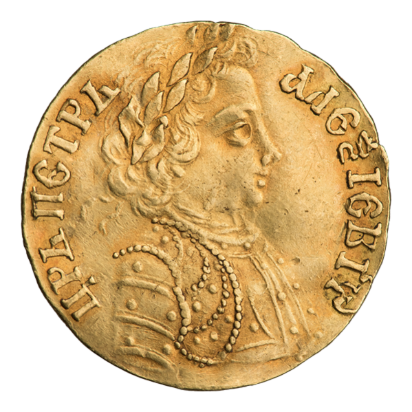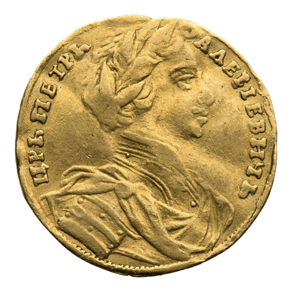 Червонцы были в Русском царстве во времена правления Петра I — в дальнейшем первого императора Российской империи. Данные монеты чеканились из коробчатого золота 969 пробы, их диаметр составляет от 23,3 до 23,6 мм, а вес равен 3,47 г, чистого золота 3,36 г. Были выпущены в Кадашевском монетном дворе. Гурт является гладким[1][2][3][4].
