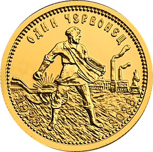 Золотой червонец, называемый иногда «Сеятелем» — золотая монета, отчеканенная в СССР в 1923 году. В 1975—1982 годах Госбанк СССР выпустил монеты, которые сохранили внешний облик монеты образца 1923 года, но с изменёнными датами. Действующая инвестиционная монета Банка России с номиналом 10 рублей[2]. По содержанию золота соответствует современной монете Георгий Победоносец 50 руб.