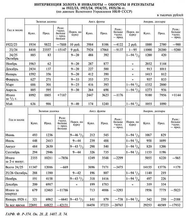 Сводная таблица выпусков золотого червонца