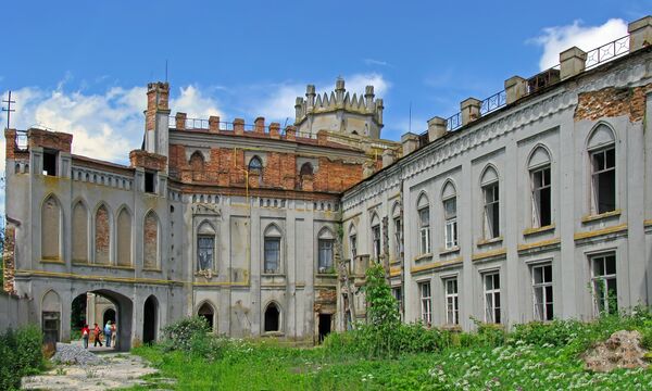 Господский дом выстроен в 1851 году графом Адольфом Норбертом Эразмом Грохольским. После его смерти в 1863 году его жена продала Червоное с неоготическим особняком Николаю Артемьевичу Терещенко. Перед главным входом во дворец расположен сад, посреди которого возвышается чугунный фонтан.