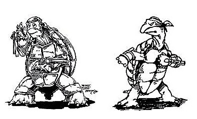 Авторы комиксов Кевин Истмен и Питер Лэрд познакомились в Массачусетсе и начали работу над совместными иллюстрациями. В 1983 году Лэрд пригласил Истмена переехать к нему в Дувр, штат Нью-Гэмпшир[1]. В ноябре того же года Истмен нарисовал черепаху в маске, которая стояла на двух задних лапах и была вооружена нунчаками[2]. Лэрд нарисовал собственный эскиз и добавил к уже имеющемуся названию Ninja Turtles (рус. Черепашки-ниндзя) слова Teenage Mutant (рус. Подростки-мутанты)[1]. Концепция пародировала сразу несколько элементов, популярных в комиксах о супергероях того времени: мутанты Uncanny X-Men, подростки New Teen Titans и ниндзя Daredevil, в сочетании с антропоморфными животными, такими как Утка Говард[3].