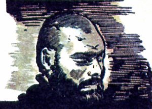 «Это была голова, бритая, с большими выступами черепа над глазами и черной стриженой бородкой и подстриженными усами, с одним открытым, другим полузакрытым глазом, с разрубленным и недорубленным бритым черепом, с окровавленным запекшейся черной кровью носом. Шея была замотана окровавленным полотенцем. Несмотря на все раны головы, в складе посиневших губ было детское доброе выражение».