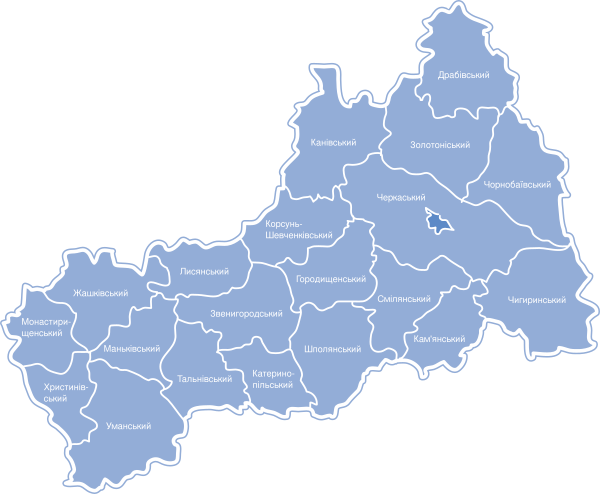 | Др. крупные города | Умань, Смела, Золотоноша, Канев, Корсунь-Шевченковский, Звенигородка, Шпола, Ватутино, Тальное | ||||