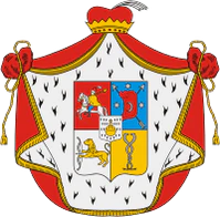 Щит покрыт мантией, принадлежащей княжескому достоинству и шапкой с пером, имеющей вид чалмы, которая наложена на золотую корону. Сия шапка с пером изъявляет знаменитость родоначальника Черкасских князей Инала, который, по родословной сказке, был султаном в Египте. Герб внесён в Общий гербовник дворянских родов Российской империи, часть 2, 1-е отделение, стр. 9.