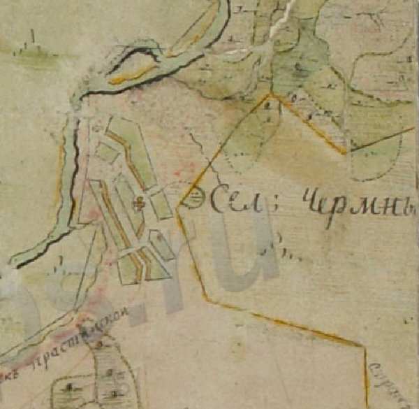 На топографической карте Темниковского уезда 1787 года Чермные фигурируют как село так как обозначена церковь, это видимо первое картографическое изображение как Чермных, так и наличия в них храма.[37]