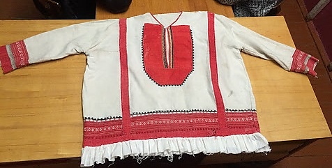 2. Более поздний комплекс (того же района) состоял из красной клетчатой поневы («клятушки») и.рубахи с косыми или прямыми ластовицами, холщевого или ситцевого нагрудника и повойника.