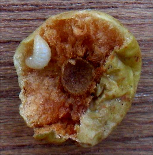 Структура галла мягкая и рыхлая, внутреннее содержимое пористое. В самом центре галла находится небольшая камера диаметром до 5—7 мм, внутри которой происходит развитие личинки. Орехотворки при помощи яйцеклада откладывают яйца по одному в мякоть листа. Это вызывает усиленный рост окружающих тканей, и в результате образуется галл. Из яйца выходит личинка, которая в конце концов превращается во взрослое насекомое. Имаго проделывает ход в мякоти галла и через него выходит наружу. В Европе основными первоисточниками чернильных орешков является обыкновенная дубовая орехотворка (Cynips quercusfolii) и Biorhiza pallida, а на территории Северной Америки — виды Amphibolips confluenta и Atrusca bella[1].