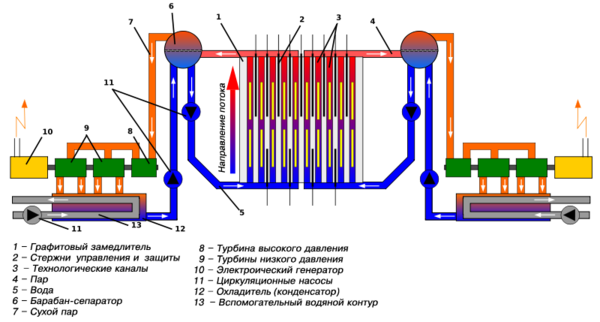 - графито-водного реактора РБМК-1000 (Реактор большой мощности канального типа);