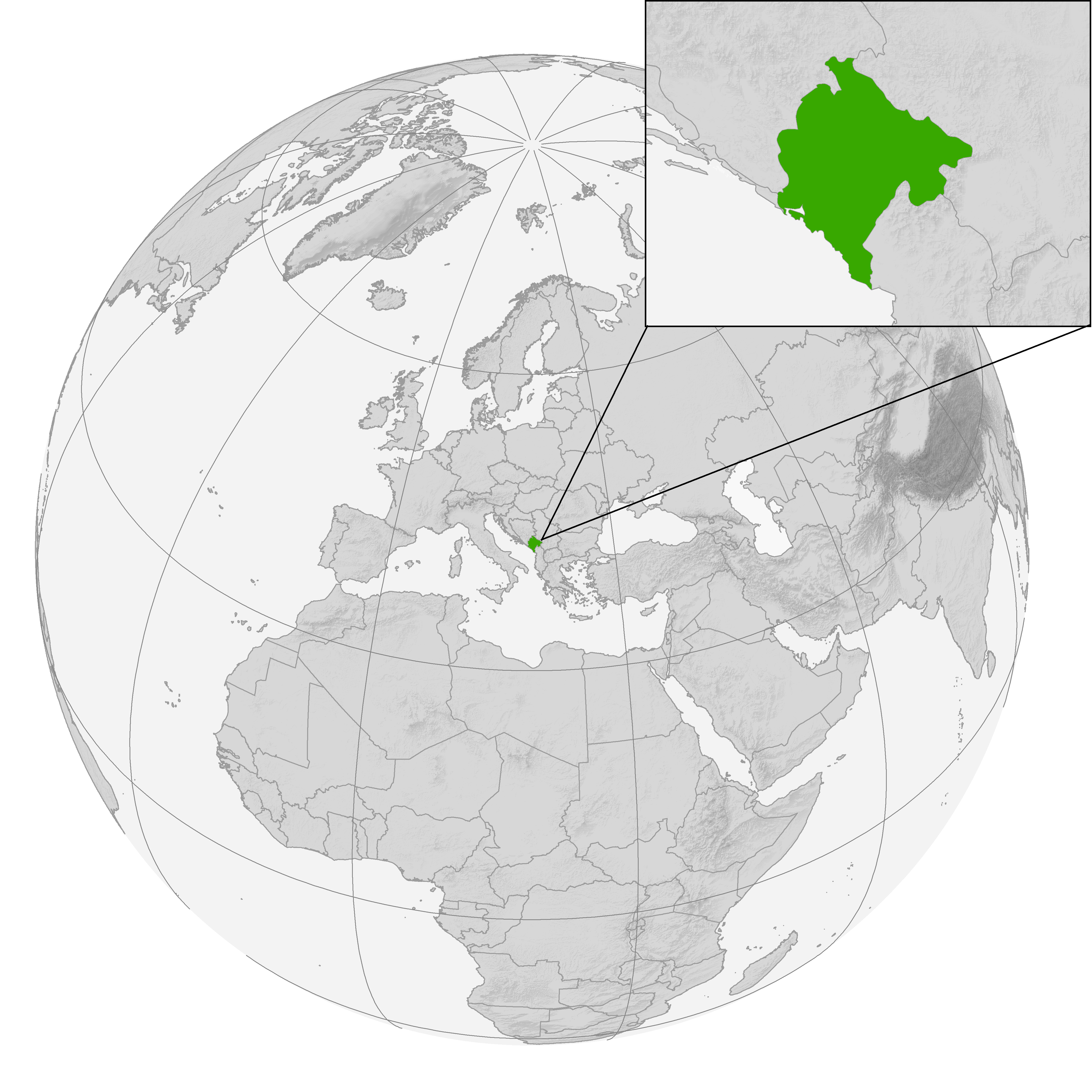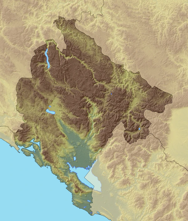 С юго-запада омывается Адриатическим морем, имеет сухопутные границы с Хорватией на западе, Боснией и Герцеговиной — на северо-западе, Сербией — на северо-востоке, с частично признанной Республикой Косово[12] — на востоке и с Албанией — на юго-востоке.