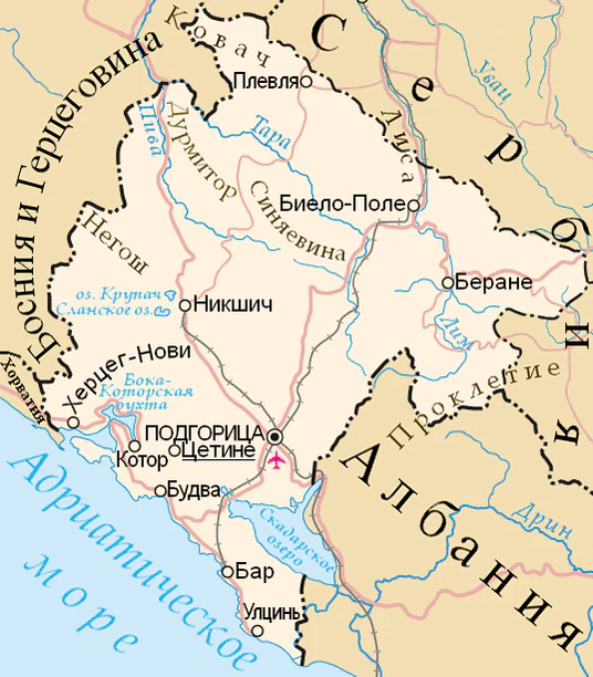 - Карта Черногории на русском языке