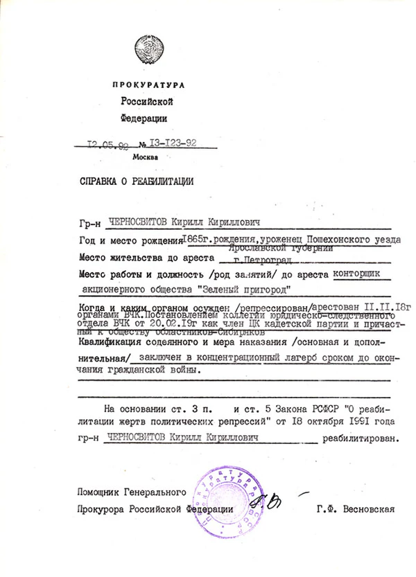 - Сын — Кирилл (родился 16 августа 1891). В 1916—1917 годах — сотрудник филиала Русско-Азиатского банка в Шанхае (Китай).