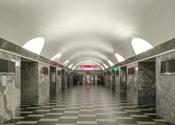 Подземный зал сооружён по проекту архитекторов А. В. Жука и С. Г. Майофиса.
