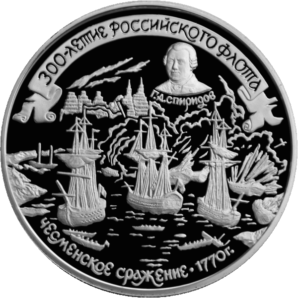 В память о Чесменской победе были отлиты золотые и серебряные медали. Медали были изготовлены по «указу её Императорского Величества Императрицы Екатерины Алексевны»: «Медаль эту жалуем мы всем находившимся на оном флоте во время сего Чесменского счастливого происшествия как морским, так и сухопутным нижним чинам и позволяем, чтобы они в память носили их на голубой ленте в петлице».