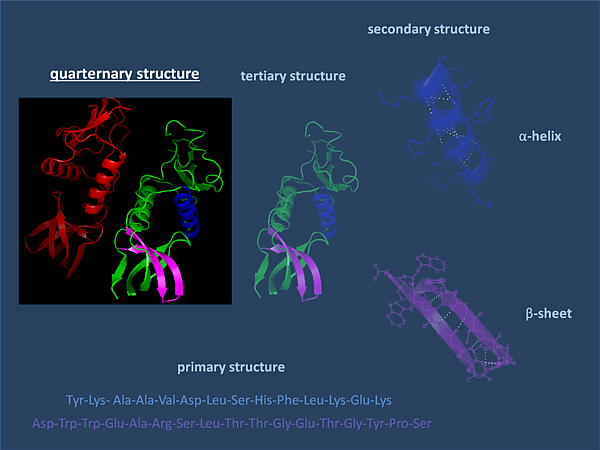 Четвертичная структура — способ укладки в пространстве отдельных полипептидных цепей, обладающих одинаковой (или разной) первичной, вторичной или третичной структурой, и формирование единого в структурном и функциональном отношениях макромолекулярного образования. Специфичность четвертичной структуры белков проявляется в определенной конформационной автономии полипептидных фрагментов, входящих в состав макромолекулы белка. Вклад гидрофобных взаимодействий в стабилизацию третичной и четвертичной структуры белков весьма значителен: в случае третичной структуры на их долю приходится больше половины стабилизирующей силы.
