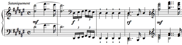 Двойственность этой темы изображает двойственную природу человека. Новшества музыкального языка, применённые в этой части, на шесть лет опережают подобные новаторские идеи в «Сонате си минор» Листа.[3]