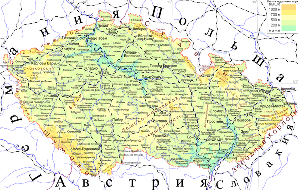 Реки из не имеющей выхода к морю Чехии текут в три моря: в Северное, Балтийское и Чёрное.