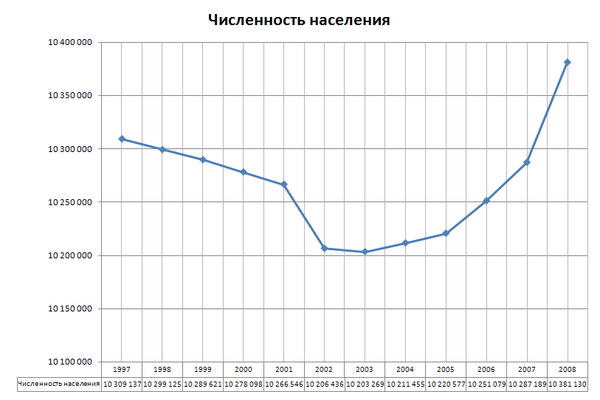 По данным Чешского статистического управления, в 2009 году численность населения Чехии достигла 10,5 млн человек[54]. По сравнению с показателем за 2008 год, число иммигрантов сократилось вдвое, составив 40 тыс. человек, а число эмигрантов увеличилось в два раза, достигнув отметки 11,6 тыс. человек.