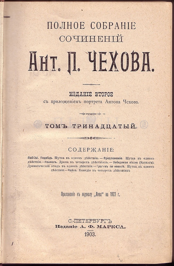 Для театра писателем созданы водевили «Медведь» и «Предложение»[42].