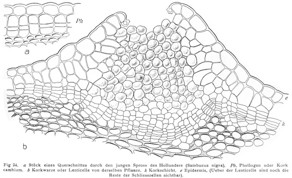 В эпидерме газообмен идёт через устьица. Но после образования перидермы эпидерма отмирает и слущивается и функцию газообмена выполняют чечевички[2].