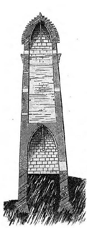 На всех этажах были бойницы и наблюдательные щели. Многие башни со ступенчатой кровлей имели дверные проёмы на всех этажах, уменьшавшиеся пропорционально сужению башни[2].