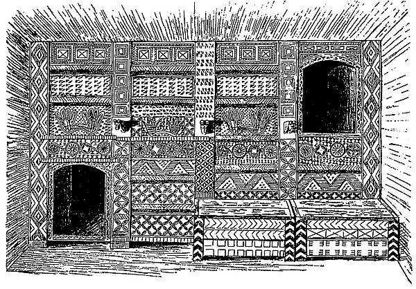 Дом достаточного чеченца построен обыкновенно из известняка в два этажа под плоской крышей. В нижнем этаже помещаются хлев и кухня. К верхнему этажу, отступающему на сажень назад, снаружи ведет каменная лестница. Этаж делится на четыре помещения, из которых первое, у входа, самое большое, имеет шагов 12 в ширину и 20 в длину. Тут стоят несколько деревянных кроватей и высокие кадки, выдолбленные из цельного дерева, диаметром в два-три фута, где хранятся пшеница и кукуруза; тут же стоят громадные мешки, набитые шерстью. Налево от этого помещения — гостиная, или кунацкая, с двумя кроватями, несколькими сундуками и полками на одной стене; на другой висит разного рода оружие; пол тут, как и во всех комнатах, земляной, но здесь он покрыт коврами. К кунацкой примыкает маленькое помещение для хозяйственных принадлежностей. За всеми этими комнатами расположена громадная кладовая, таких же размеров, как и входная комната. Тут опять стоят кровать и громадные сундуки грубой плотницкой работы, сколоченные когда-то пленными русскими солдатами, несколько больших чанов, наполненных чеченским сыром, две-три высоких кадки с кукурузой. К стенам прикреплены тазы, тарелки и посуда разной величины, а к потолку на больших деревянных крючках привешены слегка прокопченные курдюки и надхребетные части хорошо выкормленных баранов[1].