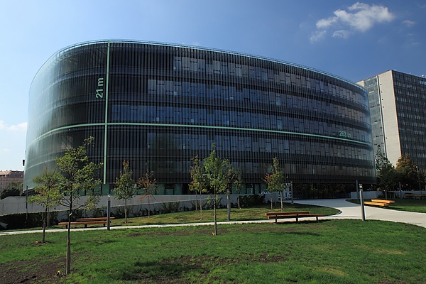 Здание имеет изогнутую форму с основанием примерно в 70х70 метров, 9 этажей, 3 из которых являются подземными (автостоянки и хранилища). Сооружение выстроено с учетом современных европейских тенденций энергосбережения и поэтому потребляет минимальное количество энергии[5].