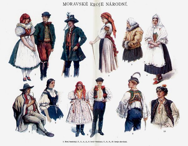 Жители Чешско-Моравской возвышенности одевались проще. Молодые парни носили короткие рубашки, а самым ярким элементом традиционной мужской одежды была шуба.