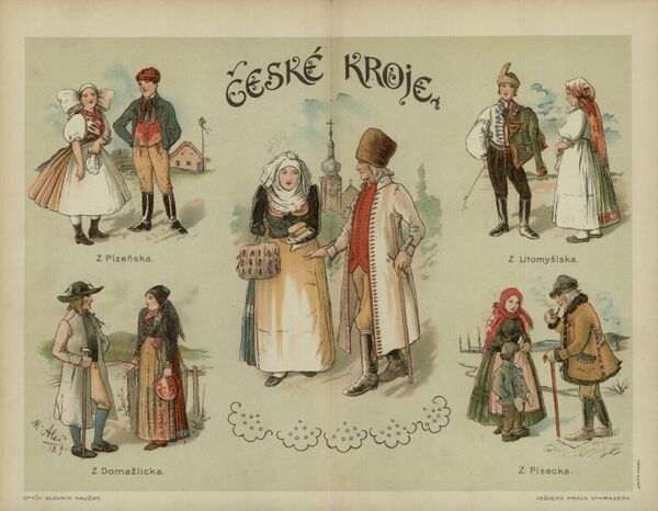 Чешский национальный костюм (чеш. Český lidový kroj) является важной частью чешской культуры. Его можно разделить на две большие группы: западный стиль в Богемии и средней Моравии и восточный стиль в Моравии и Силезии. В обоих регионах зимнюю одежду делали из шерсти и льна, а летнюю одежду — из лёгких тканей, в частности из шелка. Женский традиционный наряд состоит из двух фартуков, спереди и сзади, и белой блузки. Типичный национальный мужской костюм состоит из длинных штанов и свободного жакета.