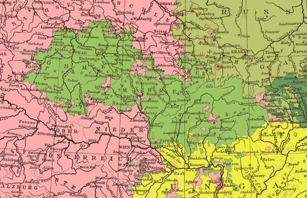 Пограничные земли, ранее населённые судетскими немцами, нельзя отнести к одному диалекту из-за разнородности населения.