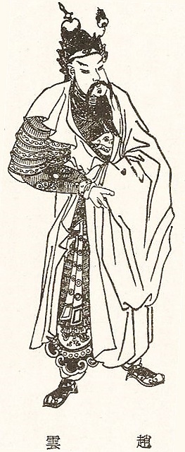 Чжа́о Юнь (также известен как Чжао Цзылун, ? - 229) — полководец, живший во времена поздней династии Хань и ранней эпохи Троецарствия в Китае. Большую часть своей жизни он служил военачальнику Лю Бэю и сыграл значительную роль в становлении царства Шу Хань. В китайской литературе и фольклоре он также упоминается как третий из Пяти полководцев-тигров. Один из немногих героев романа, на ряду с Люй Бу, который мог стоять против целых армий и неофициально считавшийся сильнейшим воином царства Шу. За свою храбрость и доблесть в бою получил прозвища "Абсолютное воплощение храбрости" и "Вечно победоносный генерал". В романе Чжао Юнь - храбрейший герой во всем Китае.