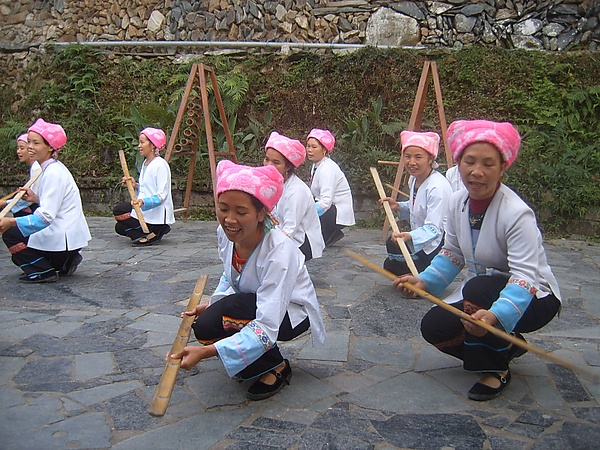 Сохраняются традиционные музыкальные инструменты — бамбуковые органы, смычковые, бронзовые барабаны. Также используются национальные китайские — флейты ди, сяо, сона (китайский гобой) и другие.
