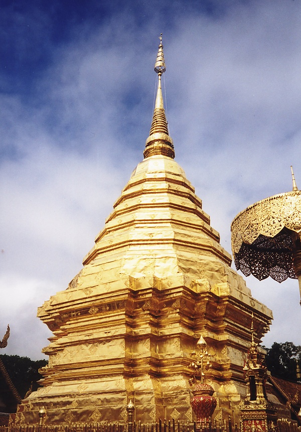 - Ват Прахат Дой Сутхеп: знаменитый храм на холме к северо-западу от города. Храм построен в 1383 году на вершине горы Дойсутхеп на высоте 1600 м над уровнем моря.. На спину слона положили священные буддийские реликвии, и в этом месте слон стал трубить и ходить кругами, что сочли хорошим предзнаменованием для строительства храма.
