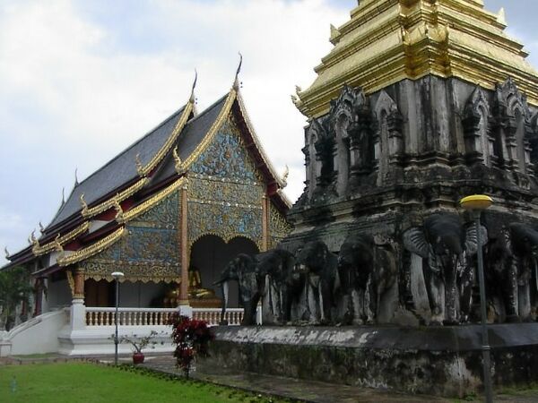 - Ват Чеди Луанг: основан в 1401 году, к храму примыкает знаменитая ступа (чеди), частично повреждённая землетрясением в XVI веке.