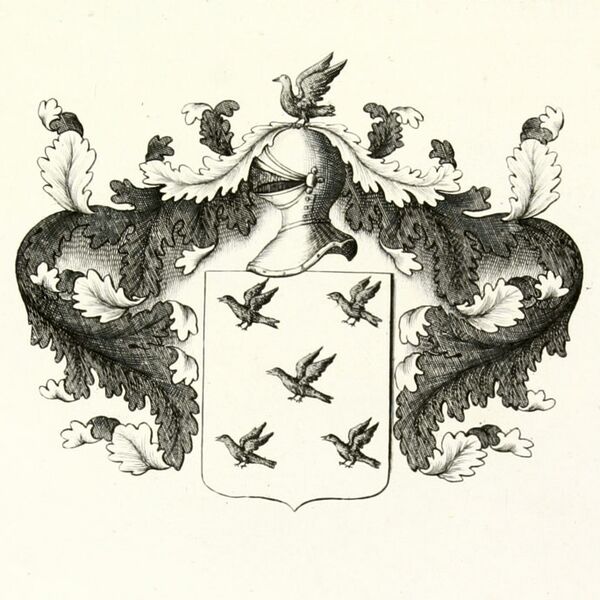 На щите дворянский коронованный шлем. Нашлемник: чиж. Намёт на щите зелёный, подложенный серебром. Герб внесен в I часть Гербовника, № 102.
