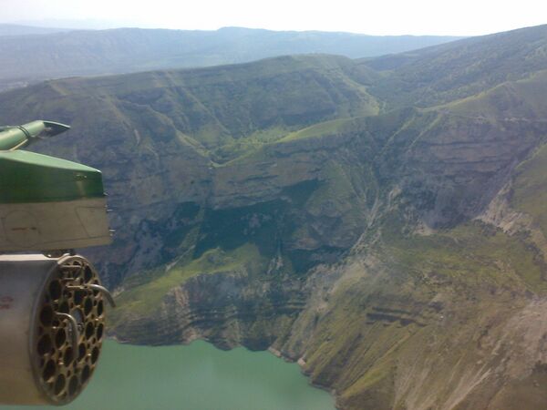 Облёт Чиркейского водохранилища на боевом вертолёте