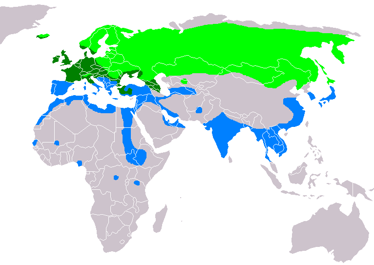 Только гнездится Круглогодично Районы миграции |