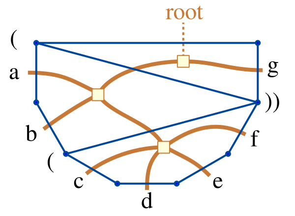 Как показывает рисунок, имеется простая комбинаторная эквивалентность между этими объектами — разбиение многоугольника имеет плоское дерево как двойственный граф, листья этого дерева соответствуют символам в последовательности при расстановке скобок, а внутренние вершины дерева, отличные от корня, соответствуют скобочным группам. Последовательность с расставленными скобками может быть записана вокруг периметра многоугольника с символами на сторонах и скобками на концах выбранных диагоналей. Эта эквивалентность даёт биективное доказательство, что все эти виды объектов подсчитываются одной целочисленной последовательностью[2].