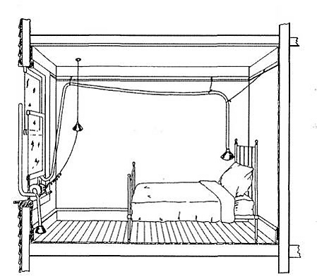 Пациент мог дышать свежим воздухом через воронку, грязный воздух удалялся через аналогичную воронку на уровне пола