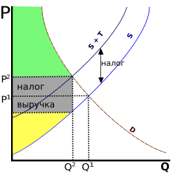 В случае налогов, их размер создает разрыв между тем, что платят потребители, и тем, что получают производители, и размер этого разрыва эквивалентен чистым издержкам, вызванным налогом[7].
