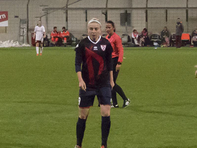 Техничная, обладает ударом с обеих ног, здорово работает с мячом, обладает высокой скоростью.