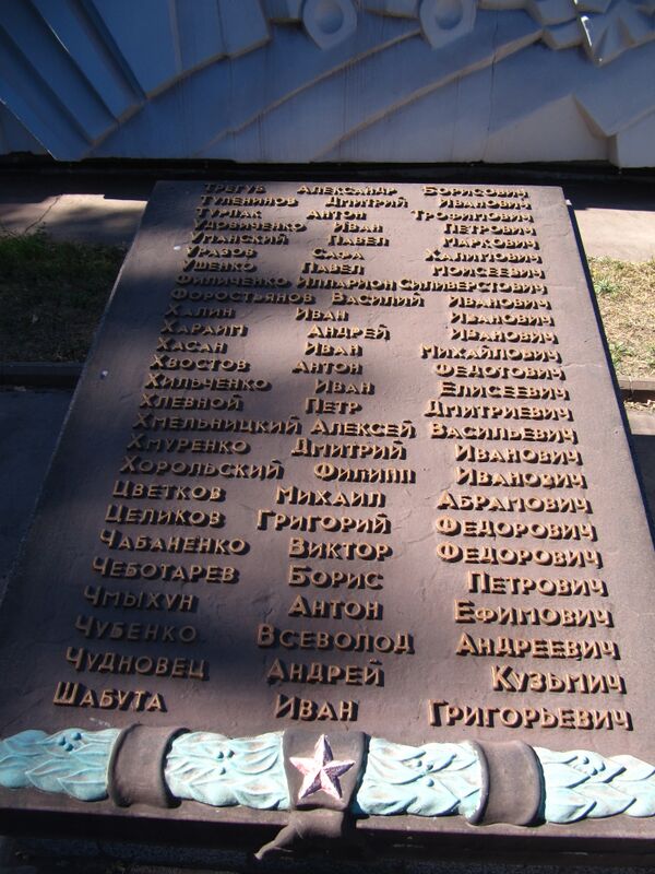 - Имя на памятнике рабочим и служащим комбината «Криворожсталь», павшим на фронтах Великой Отечественной войны 1941—1945 годов.