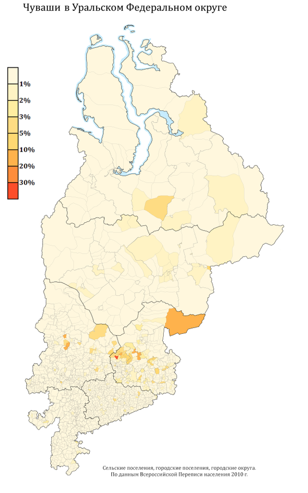 Численность в 2010 году: в мире — 1,5 млн[44], из них в России — 1 млн 435 тысяч (согласно результатам переписи 2010 года). В Чувашии проживает больше половины всех чувашей, живущих в России, остальные проживают практически во всех регионах России, а небольшая часть — за пределами Российской Федерации, наибольшие группы в Казахстане, Узбекистане и Украине.