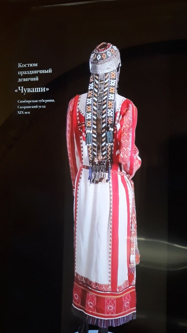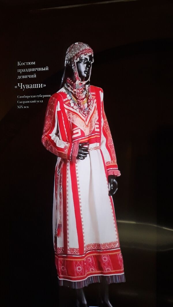 Одежда традиционного типа имела разнообразные формы и варианты. Кроме утилитарного назначения — защиты тела от воздействий наружной среды — она обладала символическими и ритуальными функциями. Материалом для одежды чувашей служили холст, домотканое сукно, покупные ткани, войлок, кожа. Для обуви использовались также липовое лыко, луб, дерево. Материал для одежды изготовлялся в основном в домашнем хозяйстве. Из конопли и льна ткали холст. Праздничную одежду шили из тонкого холста (ҫинҫе пир), а из холста среднего качества (вӑтам пир) — рабочие рубахи, шаровары. Тонкое сукно из овечьей шерсти (тала) шло на праздничные и свадебные кафтаны (сӑхман), грубое — на обычные кафтаны и чапаны[104]. В ансамбль женской одежды входит: кӗпе (рубашка) с нагруд. медальонами кӗскӗ, шупӑр (вид халата), чӗр ҫитти (передник), пиҫиххи (пояс), платки, атӑ (сапоги), тӑла (онучи, белые у низовых и средненизовых, чёрные у верховых), головной убор у девушек тухья с закрытым, конусообразным или хушпу с открытым верхом у замужних женщин, сурпан и сурпан тутри (женские полотенцеобразные повязки), чалма (повязка поверх сурпана), масмак (налобная повязка). К чувашским украшениям с монетами, бусами и бисерным шитьём относятся теветь (чересплечная перевязь), сӑрка (подвеска), алка (серьги), шӑрҫа (бусы), мӑя (ожерелье), ама, шӳлкеме, сурпан ҫакки (нагрудные украшения), ҫӗрӗ (кольцо), сулӑ (браслет), яркӑч (набедренники), сарӑ (поясной наряд замужних женщин), ҫӳҫ хӳри (нахвостник), ҫӳҫ туни тенки (накосник), енчӗк (кошелёчек для зеркала и монет), тӗкӗр (поясное зеркальце) и др. Мужчины носили кӗпе (рубашка), йӗм(штаны), атӑ (сапоги), ҫӑматӑ (валенки), ҫӑпата (лапти), калпак (шляпу), а жених — ҫулӗк, кӗрӳ тутри (вышитый наспинный платок с бахромой), в руке держал саламат (нагайку). Мальчиков одевали идентично взрослым, но без принадлежностей ритуального характера[105].